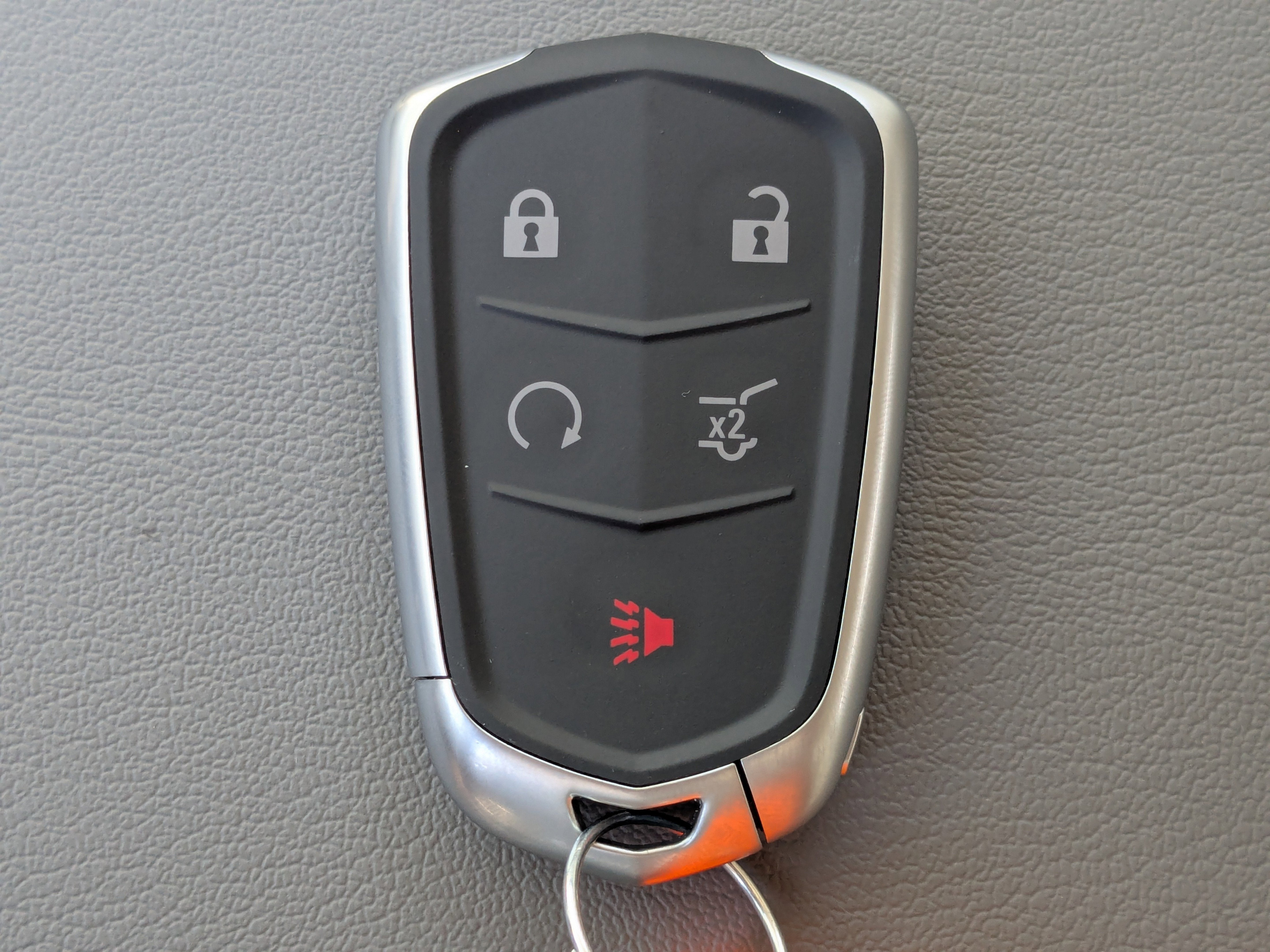 - Opens or closes when the system senses the key fob and the driver extends their foot under the left-hand side of the rear bumper over an image of the Cadillac Crest projected under the vehicle