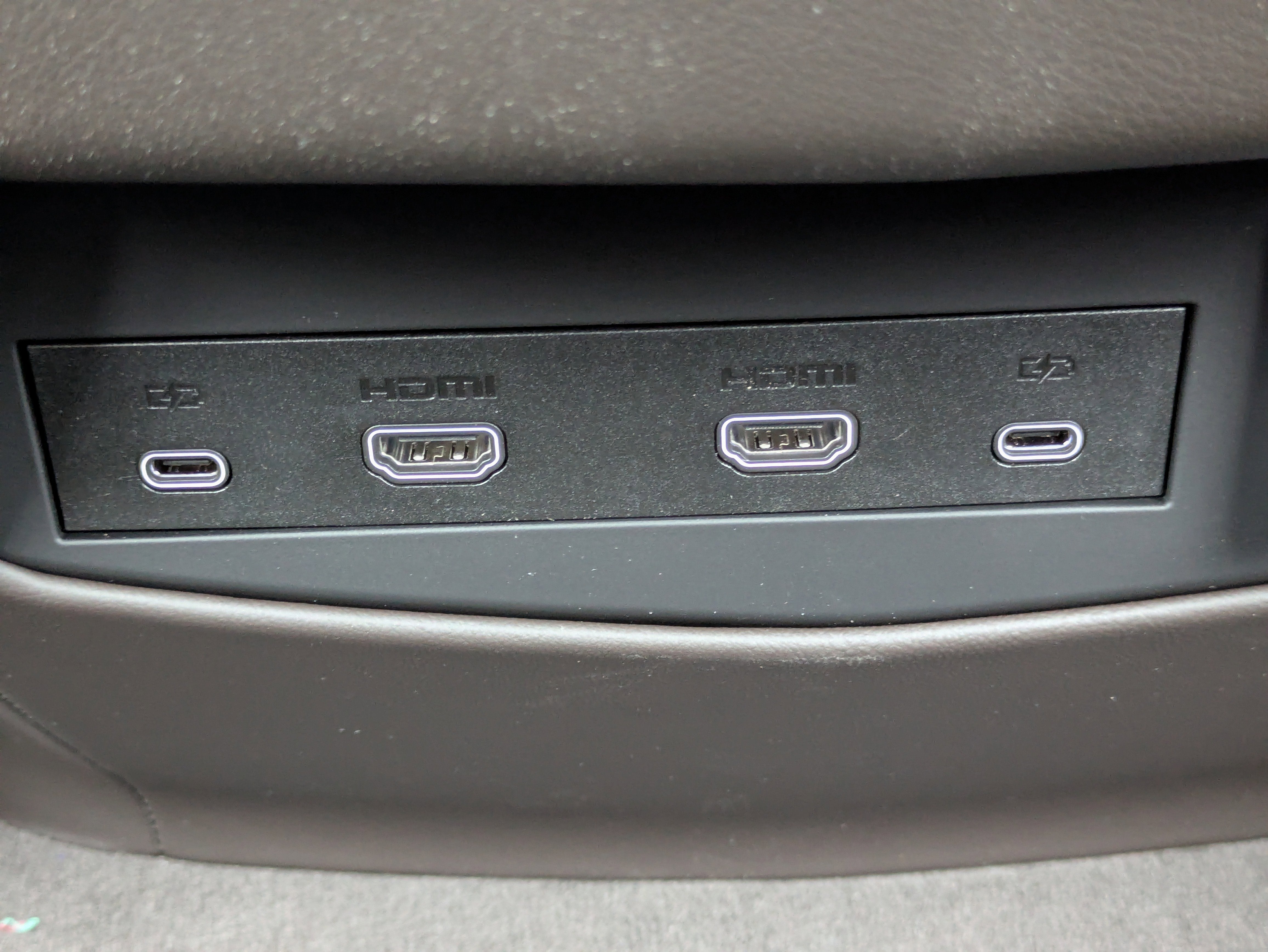 - 2 HDMI and 2 USB Type C (charge-only) ports1 on the back of the center console