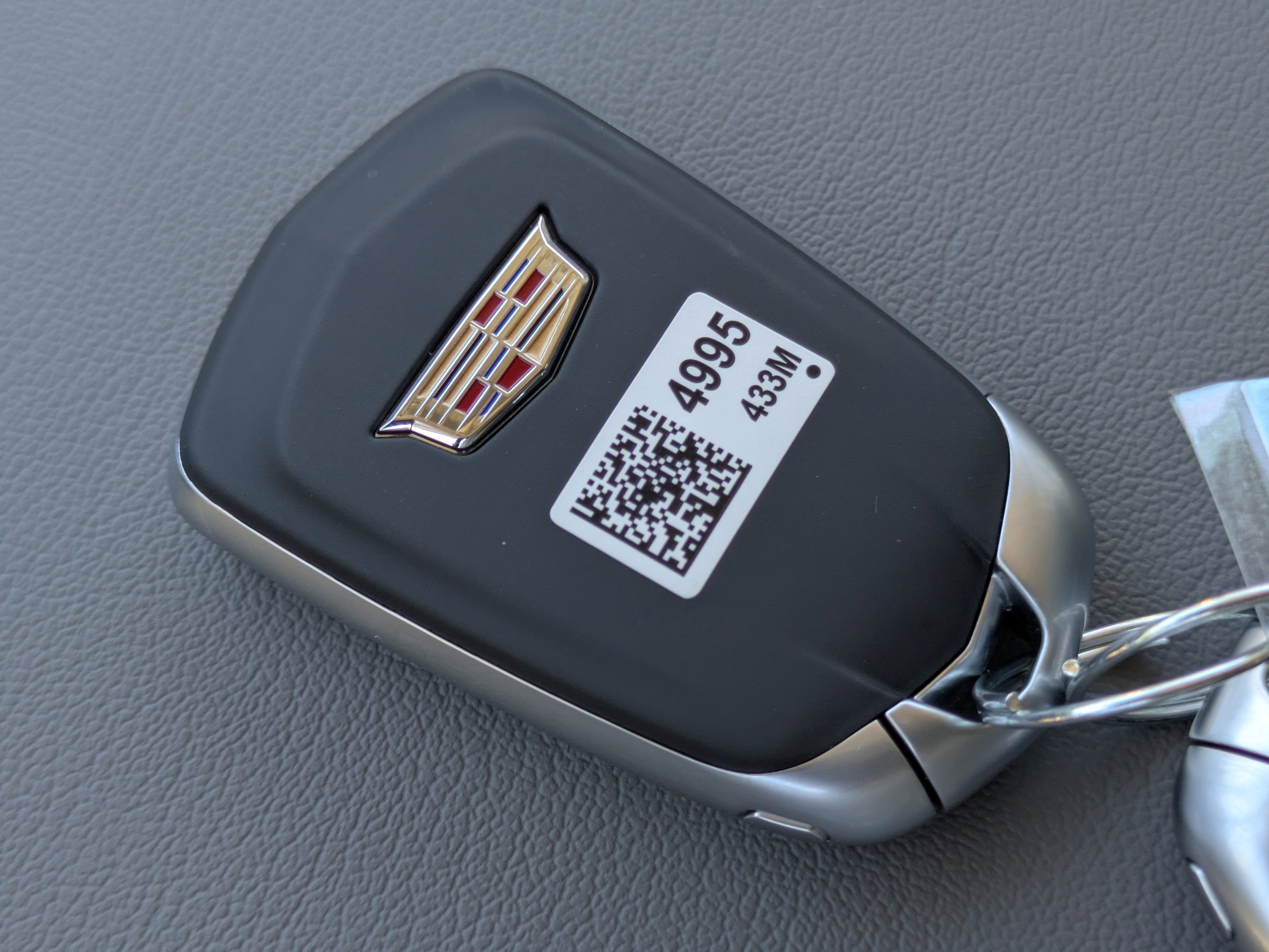 - Opens or closes when the system senses the key fob and the driver extends their foot under the left-hand side of the rear bumper over an image of the Cadillac Crest projected under the vehicle