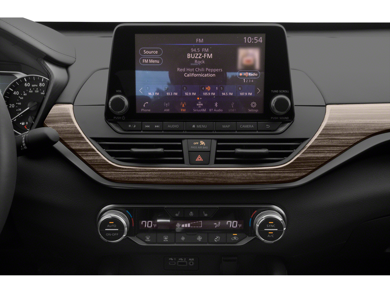 • Radio: AM/FM Audio System -inc: RDS, MP3, aux-in, 6 speakers, NissanConnect featuring Apple CarPlay, Android Auto, 8" color display w/multi-touch control, 1 front illuminated USB port (type-C) for compatible devices, SiriusXM radio w/advanced audio features, Bluetooth® hands-free phone system, streaming audio via Bluetooth®, hands-free text messaging assistant, 2 rear illuminated USB ports (type-A, 1 type-C) for compatible devices, Siri Eyes Free/Google Assistant voice recognition