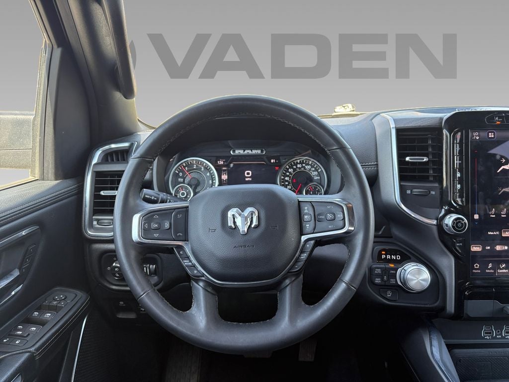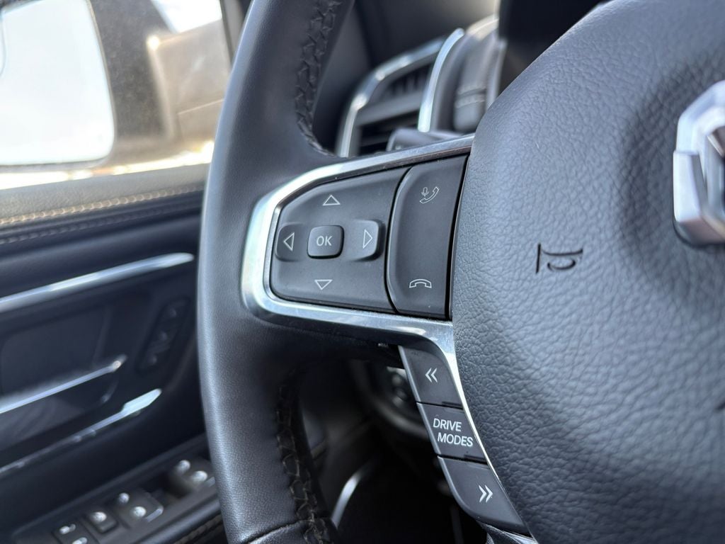 See what's behind you with the back up camera on this model. Apple CarPlay: Seamless smartphone integration for this 2025 Ram 1500 - stay connected and entertained on the go! This 2025 Ram 1500 offers Automatic Climate Control for personalized comfort. This Ram 1500 features a hands-free Bluetooth® phone system. The leather seats in this 2025 Ram 1500 are a must for buyers looking for comfort, durability, and style. You'll never again be lost in a crowded city or a country region with the navigation system on this Ram 1500. This unit is pure luxury with a heated steering wheel. The Ram 1500's Lane Departure Warning helps keep you in your lane. The state of the art park assist system will guide you easily into any spot. This vehicle is a certified CARFAX 1-owner. This model's Forward Collision Warning feature alerts drivers to potential front-end collisions. It has automated speed control that adjusts to maintain a safe following distance, enhancing highway driving convenience.