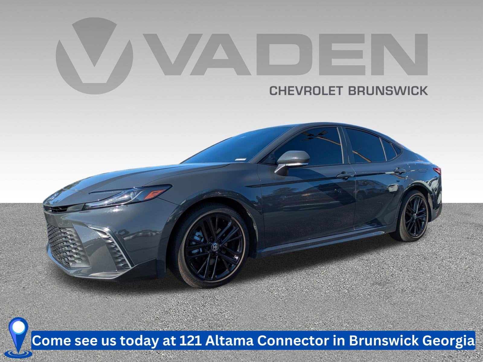 Vaden is pleased to offer this Heavy Metal 2025 Toyota Camry SE with Black Cloth... Beautifully equipped with 2.5L 4-Cylinder 16V DOHC, Black w/Fabric Seat Trim, ABS brakes, Active Cruise Control, Alloy wheels, Electronic Stability Control, Front dual zone A/C, Heated door mirrors, Illuminated entry, Low tire pressure warning, Remote keyless entry, Traction control, 4-Wheel Disc Brakes, 6 Speakers, Air Conditioning, AM/FM radio: SiriusXM, Apple CarPlay/Android Auto, Auto High-beam Headlights, Automatic temperature control, Brake assist, Bumpers: body-color, Delay-off headlights, Driver door bin, Driver vanity mirror, Dual front impact airbags, Dual front side impact airbags, Emergency communication system: Safety Connect (up to 10-year trial subscription), Exterior Parking Camera Rear, Four wheel independent suspension, Front anti-roll bar, Front Bucket Seats, Front Center Armrest, Front reading lights, Fully automatic headlights, Knee airbag, Leather Shift Knob, Leather steering wheel, Occupant sensing airbag, Outside temperature display, Overhead airbag, Overhead console, Panic alarm, Passenger door bin, Passenger vanity mirror, Power door mirrors, Power driver seat, Power steering, Power windows, Radio data system, Radio: Toyota Audio Multimedia w/8" Touchscreen, Rear anti-roll bar, Rear reading lights, Rear seat center armrest, Rear side impact airbag, Rear window defroster, Security system, SofTex & Fabric Seat Trim, Speed control, Speed-sensing steering, Split folding rear seat, Spoiler, Steering wheel mounted audio controls, Telescoping steering wheel, Tilt steering wheel, Trip computer, Turn signal indicator mirrors, Variably intermittent wipers, and Wheels: 18" Black-Finished Alloy! Approved customer communicated additions (repairing minor cosmetic flaw, added accessories, etc.) Prior to delivery will be subject to additional charges. ***All of Our Vaden New Car Pricing is Transparent, the price you see is the price you pay!!**** 2.5L 4-Cylinder 16V DOHC, Black w/Fabric Seat Trim, ABS brakes, Active Cruise Control, Alloy wheels, Electronic Stability Control, Front dual zone A/C, Heated door mirrors, Illuminated entry, Low tire pressure warning, Remote keyless entry, Traction control.